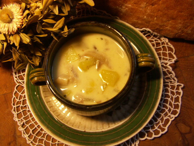 Použité suroviny: 4 větší brambory, 15 dkg sušených hub, 2 vejce, 1 cibule, kelímek zakysané ...